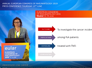 EULAR 2019 - Press conference: Incidence of cancer in TNFi-treated patients with PsA